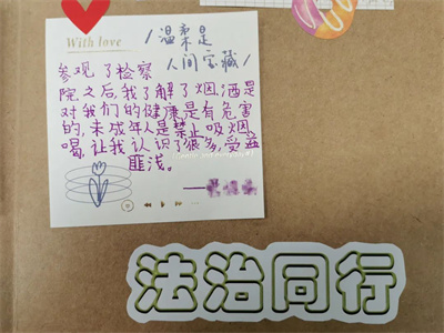 “参观完检察院后,我知道了很多法律知识。”“我要做一名遵纪守法的小朋友。”参观结束之际,每位小营员都写下了本次参观检察院的想法,表达着他们对这次奇遇之旅的感想。