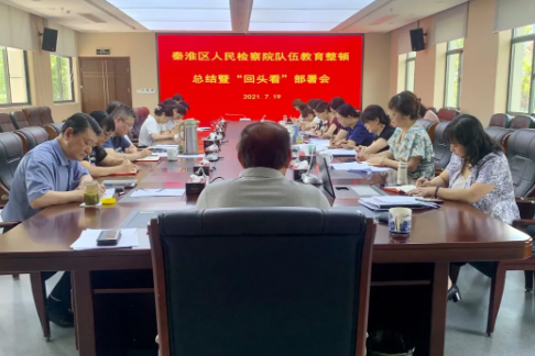 7月19日上午,秦淮区检察院召开检察队伍教育整顿总结暨“回头看”部署会,院教育整顿工作领导小组及办公室全体成员参加会议。