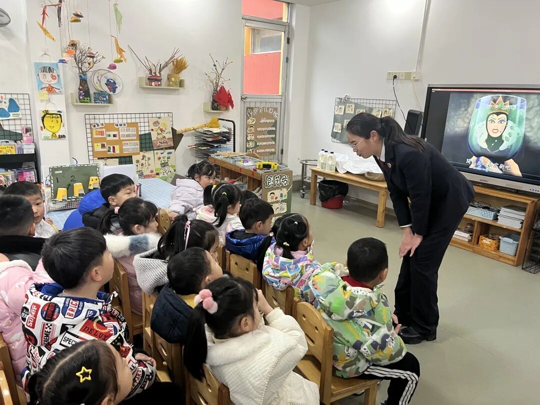 法治课上,检察干警针对学龄前儿童心理发展特点,通过播放动画片段、互动答题等方式,为小朋友们打开一扇法律知识之窗,引导小朋友们学法尊法守法用法。